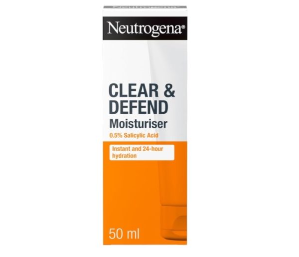 Neutrogena Clear and Defend Moisturiser ,Oil-Free Daily Face Cream for Spot-Prone Skin, with Purifying 0.5% Salicylic Acid to Help Prevent Breakouts for Smoother, Softer & Clearer Skin-50 ml