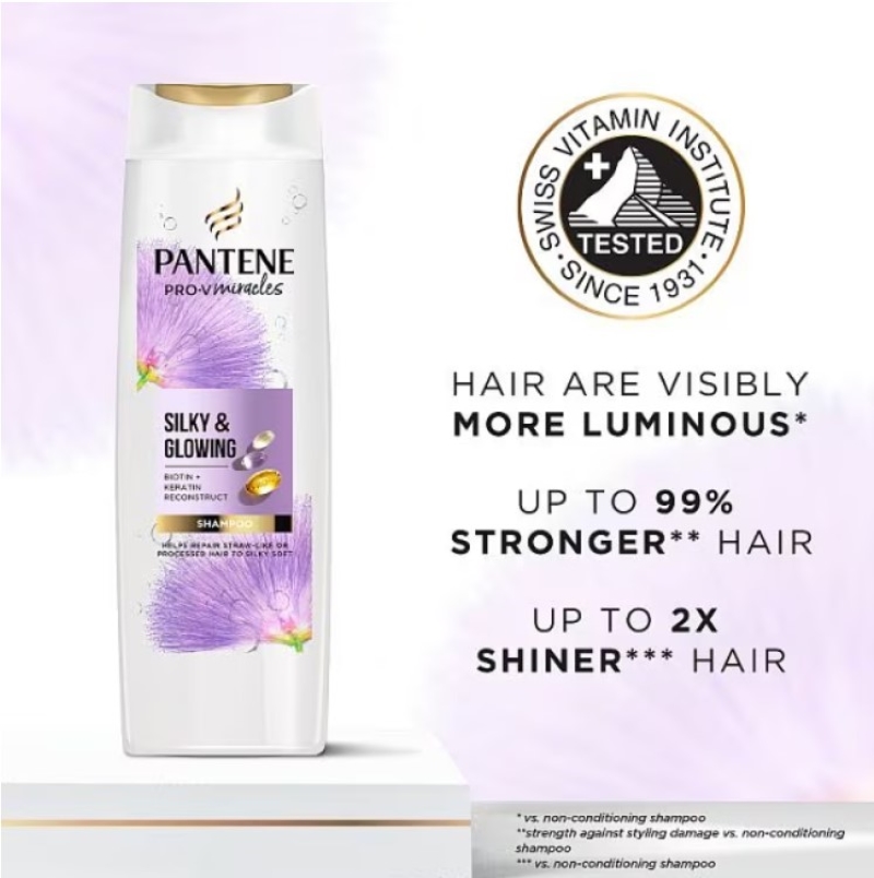 Dreaming of running your fingers through silky-soft lengths? Bring dull, bleached hair back to feeling alive and shiny with Pantene Silky & Glowing shampoo. Our formula made with biotin, keratin reconstruct and our highest concentration of Pro-V is designed to help repair overprocessed hair, to leave it feeling irresistibly soft like silk. Crafted with a special blend of nutrients, it works to transform straw-like hair. Suitable for everyday use, the Silky & Glowing collection offers hair care ideal for bleached and highlighted styles. Explore the full range of Silky & Glowing hair products, including conditioner, purple shampoo and hair mask.